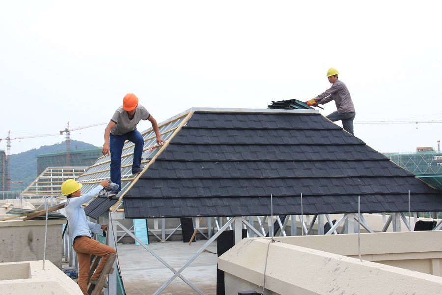pieskované strešné tašky sú len asi 1/6 v porovnaní s bežnými cementovými a hlinenými dlaždicami. Sú veľmi ľahké, dajú sa ľahko rezať a ohýbať a majú viac uzlových konektorov, vďaka čomu je inštalácia jednoduchšia, rýchlejšia a jednoduchšia. Dá sa pohodlne postaviť aj v budovách s veľkými sklonmi. Vodotesný a vetruodolný dizajnový proces klincovania robí spoj medzi dlaždicami užším a spojenie medzi dlaždicami a krytinou pevnejšie, vďaka čomu je strešný systém extrémne odolný voči silnému dažďu, silnému snehu a silnému vetru.